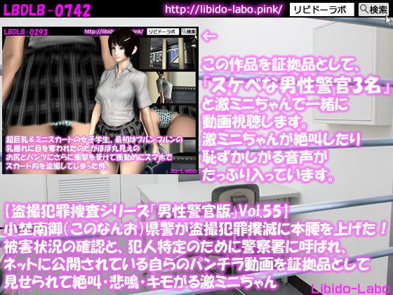 ◎【盗撮犯罪捜査シリーズ男性警官版Vol.55】小埜南御(このなんお)県警が盗撮犯罪撲滅に本腰を上げた!被害状況の確認と、犯人特定のために警察署に呼ばれ、ネットに公開されている自らのパンチラ動画を証拠品として見せられて絶叫・悲鳴・キモがる激ミニちゃんの作品詳細