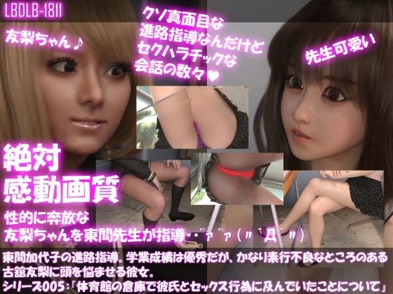 【△200】東間加代子の進路指導。学業成績は優秀だが、かなり素行不良なところのある古舘友梨に頭を悩ませる彼女。シリーズ005:『体育館の倉庫でセックス行為に及んでいたこと』の作品紹介コメント