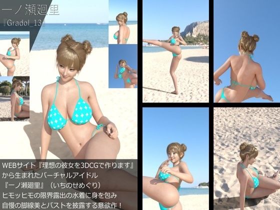【+All】『理想の彼女を3DCGで作ります』から生まれたバーチャルアイドル「一ノ瀬廻里(いちのせめぐり)」のグラドル撮影風写真集:Gradol_13の作品紹介コメント