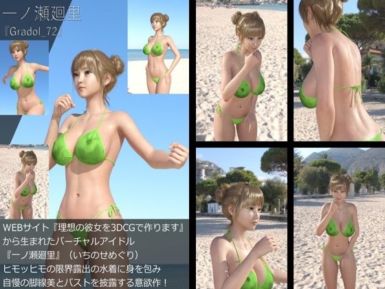 WEBサイト『理想の彼女を3DCGで作ります』から生まれた写実的ヴァーチャルアイドル女優「一ノ瀬廻里(いちのせめぐり)」の写真集です。表紙を含めて全62ページです。ナマ脚に自信があるという彼女。ヒモヒモの限界露出水着で彼女の肢体を存分に堪能できます。担当大元の画像が横1820×縦2570ピクセルのため、作品本体はPDFですがかなりの拡大に耐えます。 …