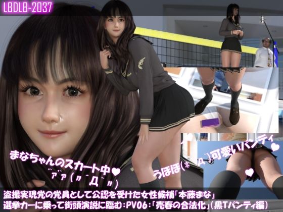 【△100】盗撮実現党の党員として公認を受けた女性候補『本藤まな』選挙カーに乗って街頭演説に臨む。「テーマ:売春の合法化について」:PV06(黒Tバックパンティ逆さ撮り編)の作品紹介コメント