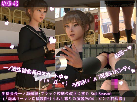 【▲100】生徒会長一ノ瀬廻里・朝の全校演説 3rd-Season(『変態サラリーマンに盗撮される!怒りの演説!!』PV04:ピンクの豹柄編)の作品紹介コメント