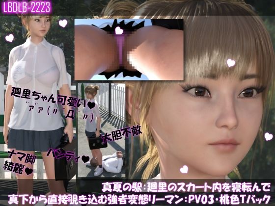 真夏の駅:廻里のスカート内を寝転んで真下から直接覗き込む強者変態リーマン・PV03:桃色Tバックの作品紹介コメント