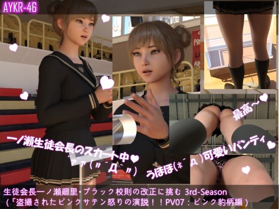 【▲200】生徒会長一ノ瀬廻里・朝の全校演説 3rd-Season(『盗撮されたピンクサテンパンティー!怒りの演説!!』PV07:ピンクヒョウ柄編)の作品詳細